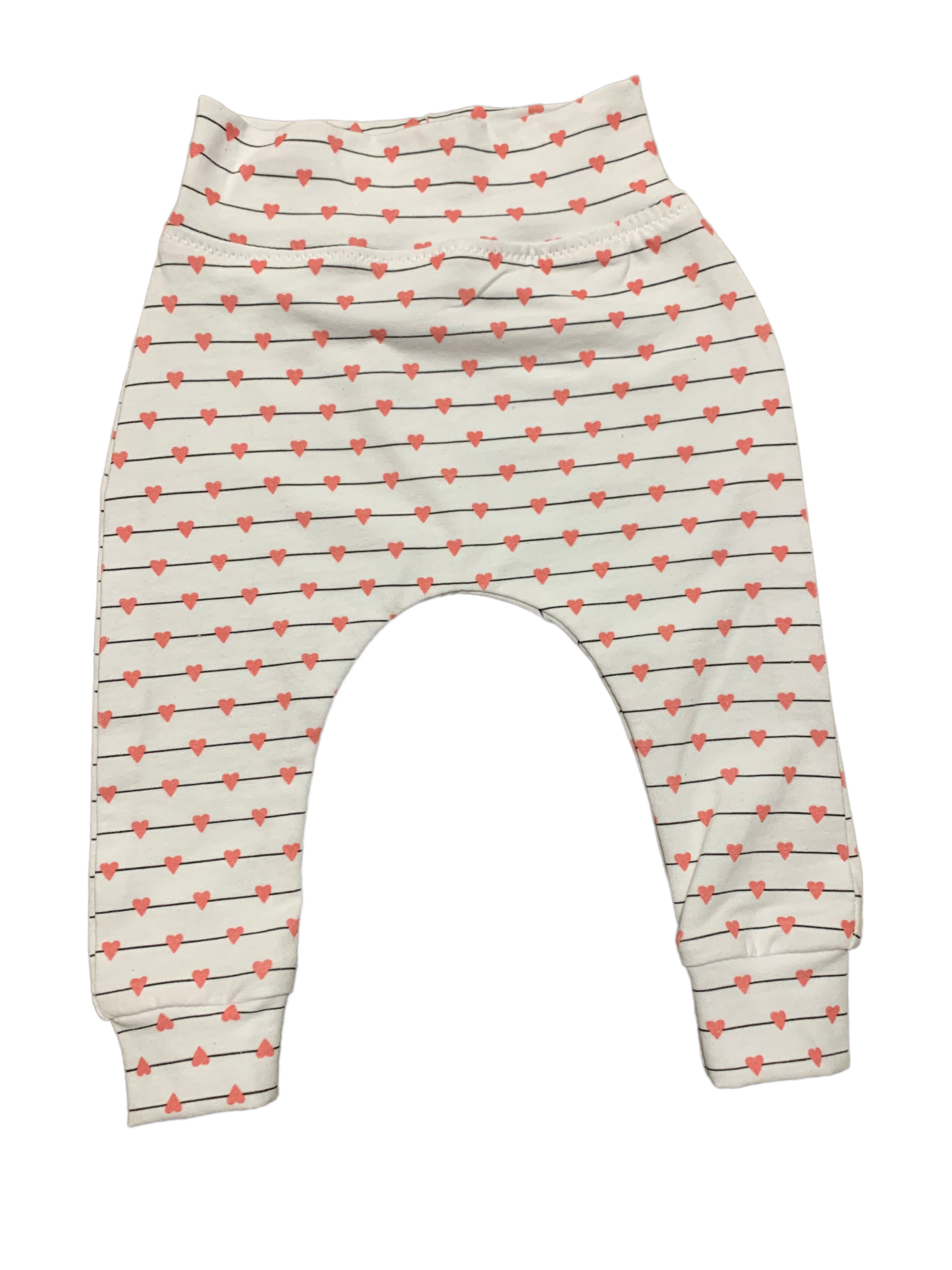 Sweet pair of harem joggers with cute little hearts. Perfect for your little one’s wardrobe
